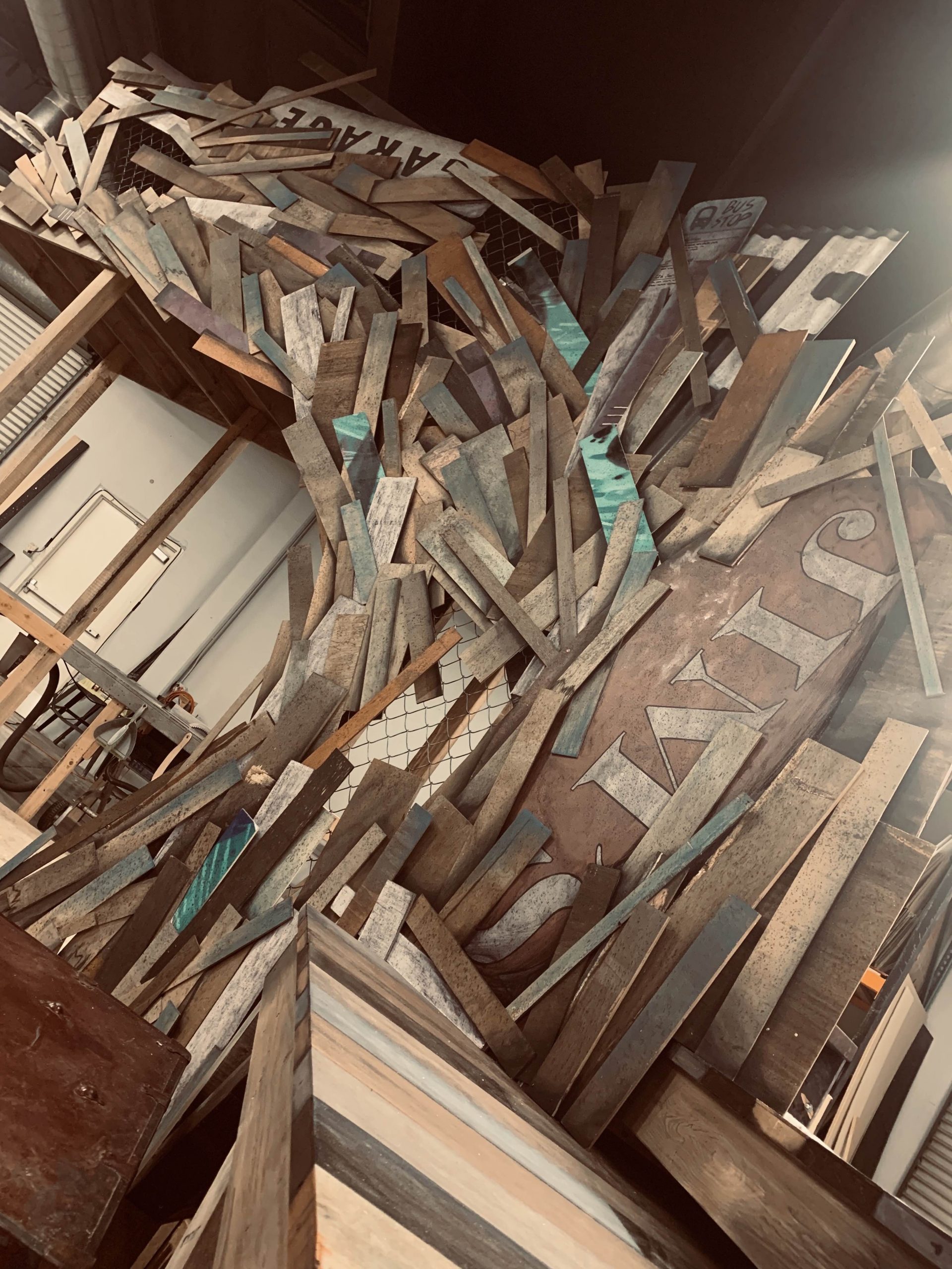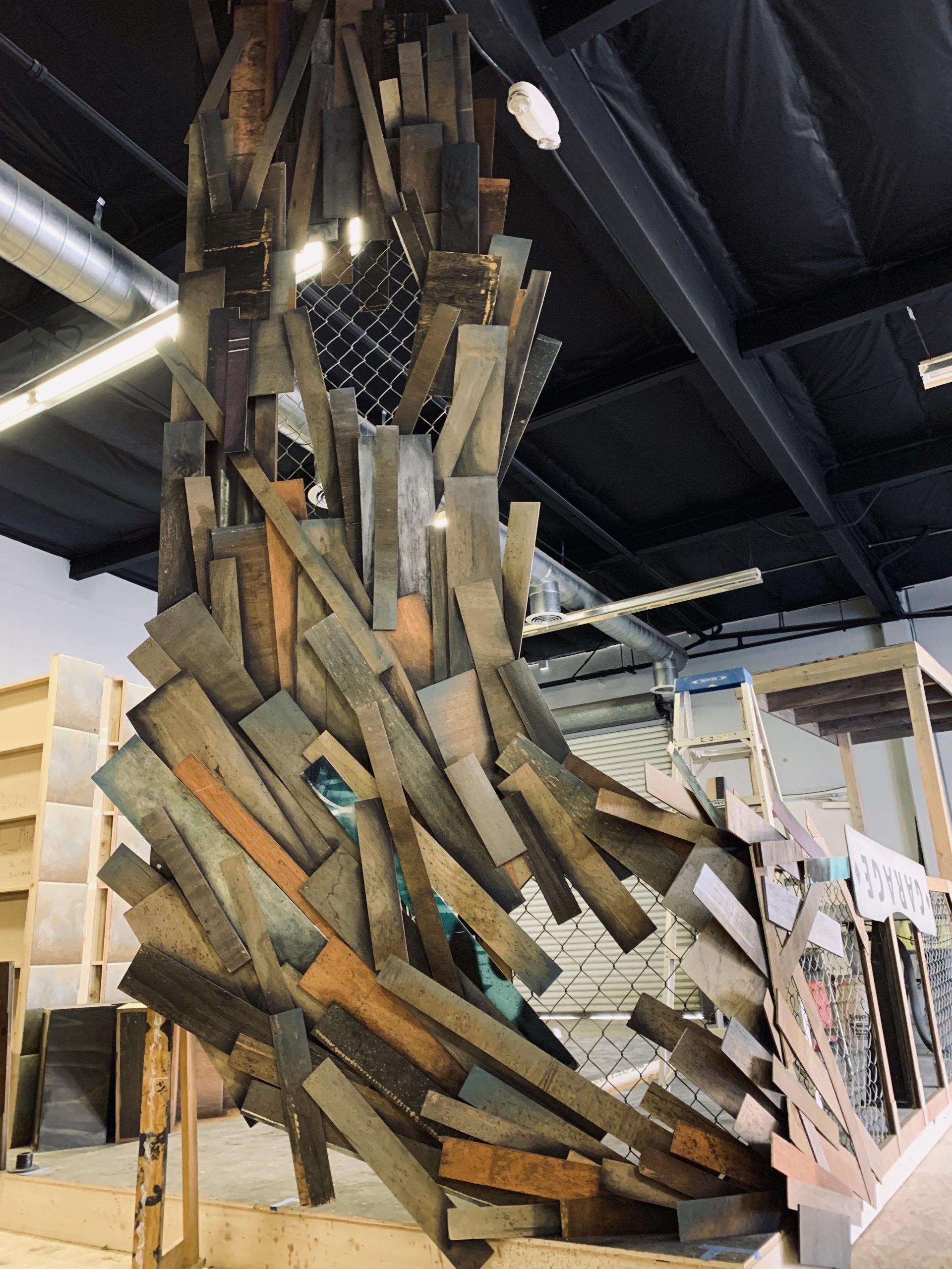 This was a question I had to think a lot about. I designed this show nearly two years ago and I’ve been looking at the progress lately of the set thinking “What exactly WAS my approach with this design?” I like to deconstruct scenery a lot and the original direction was very specific about there being certain levels, set pieces, etc. I think what I had landed on was the idea of this found alley space that a group of people came together in to make a little more beautiful and a little more of a place to call home; To create something substantial out of nothing, something cold in texture but intense with burning passion.